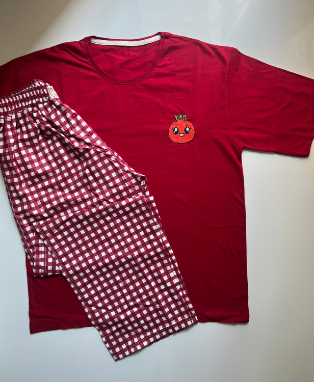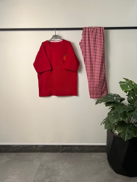 ست تیشرت شلوار بگ پینترستی گلدوزی سیب